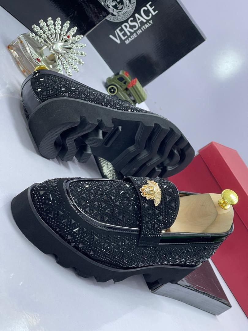 Versace Black Studded Platform Loafers with Medusa Head Detail