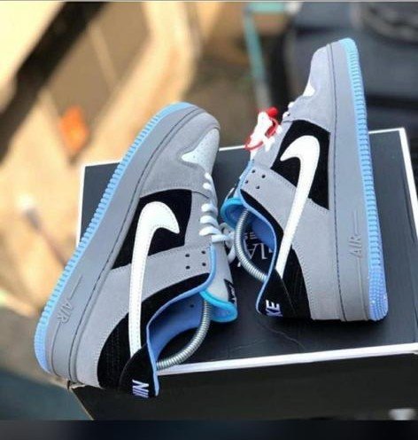 Unisex Nike Air Force 1 Grey Black Blue Accents
