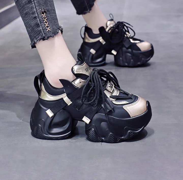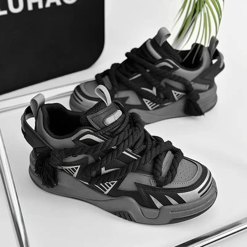 Black & Grey Rope Lace Chunky Sole Sneakers